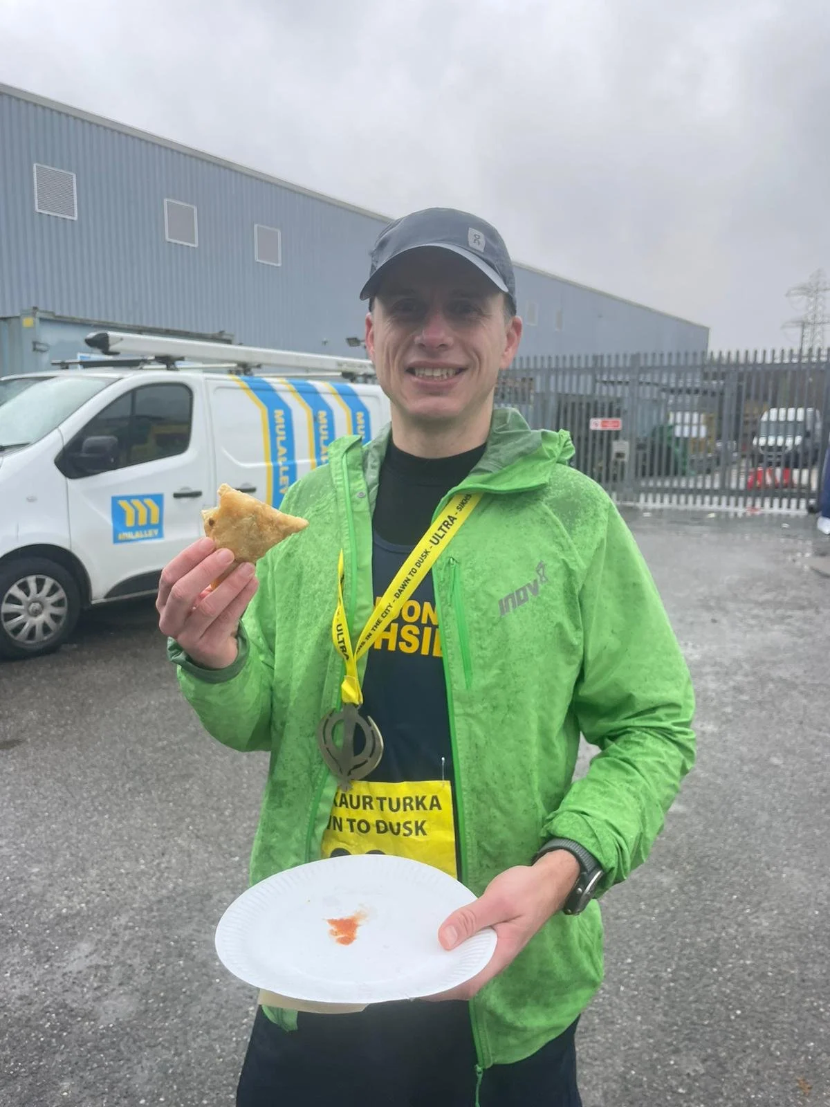 Filipe Cardoso sends the following report:- “For the 3rd time in a row, I entered the Dawn to Dusk ultra marathon, organised by the welcoming Sikhs in the City running group. The race consists basically of running as many laps as possible of a 2km road loop in Northeast London, starting at sunrise and finishing at sunset (just under 8 hours). In previous years, I held on till end and slowly climbed positions as runners ended their race before the cut off. This year, the rain, cold and a blister got to me. So, I decided to call it a day at 50km, enjoy a hot cup of tea and a delicious samosa before catching the 123 bus I kept seeing during the race. Jose Rodriguez finished 1st and broke his course record from last year, finishing 100km in 7:28:01. Holly Harris was the first lady and 4th overall, completing 68km in 7:40:14.”