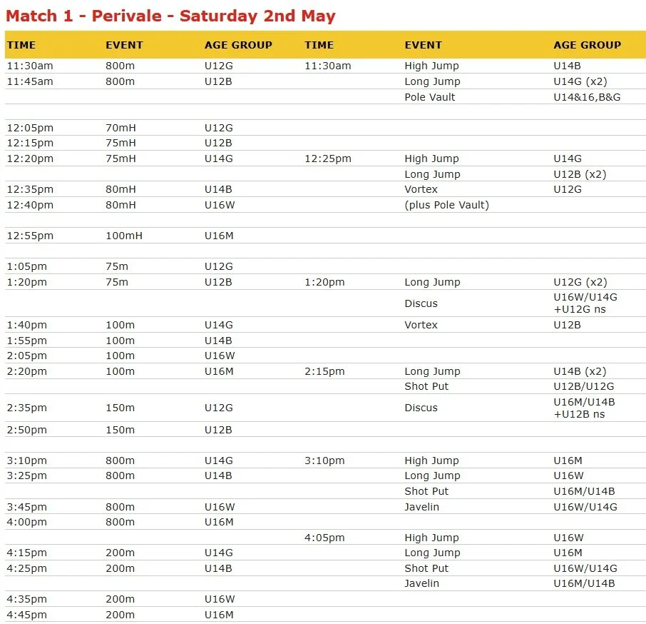 League for U12, U14 and U16 Athletes